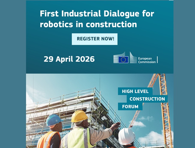 In this context and ahead of the High Level Construction Forum, the European Commission (DG GROW) is launching the first Industrial Dialogue on Robotics in Construction, at its premises in Brussels. The event of 29 April will bring together stakeholders from across the construction and robotics technology value chains.