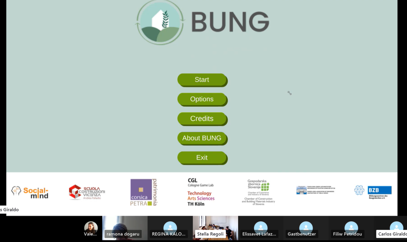 Στο πλαίσιο του τελικού συνεδρίου παρουσιάστηκε το εκπαιδευτικό παιχνίδι “BUNG” που  αποσκοπεί στην παροχή γνώσεων για την ανάπτυξη δεξιοτήτων κατασκευής κτιρίων μηδενικής ενέργειας και την ενθάρρυνση ενεργειακά αποδοτικών συμπεριφορών μεταξύ των κατοίκων των κτιρίων αυτών.