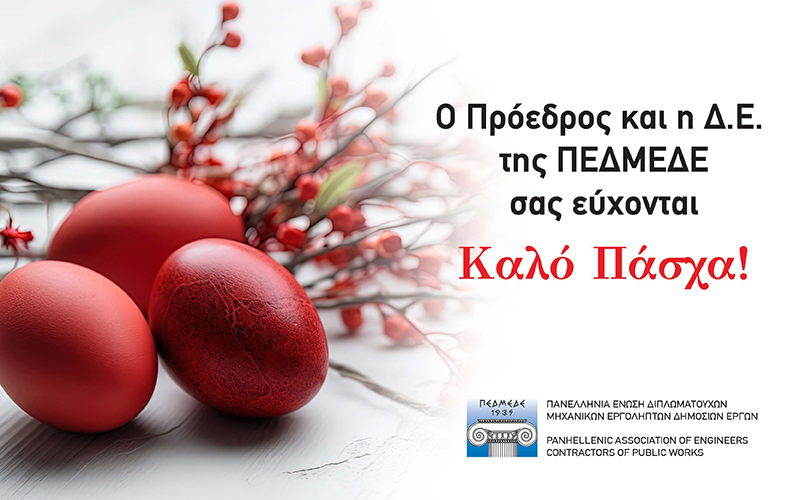 Ευχές για Καλή Ανάσταση και χαρούμενο Πάσχα από τον Πρόεδρο της Ένωσης, κ. Κωνσταντίνο Γκολιόπουλο και τα μέλη της Διοικούσας Επιτροπής της ΠΕΔΜΕΔΕ